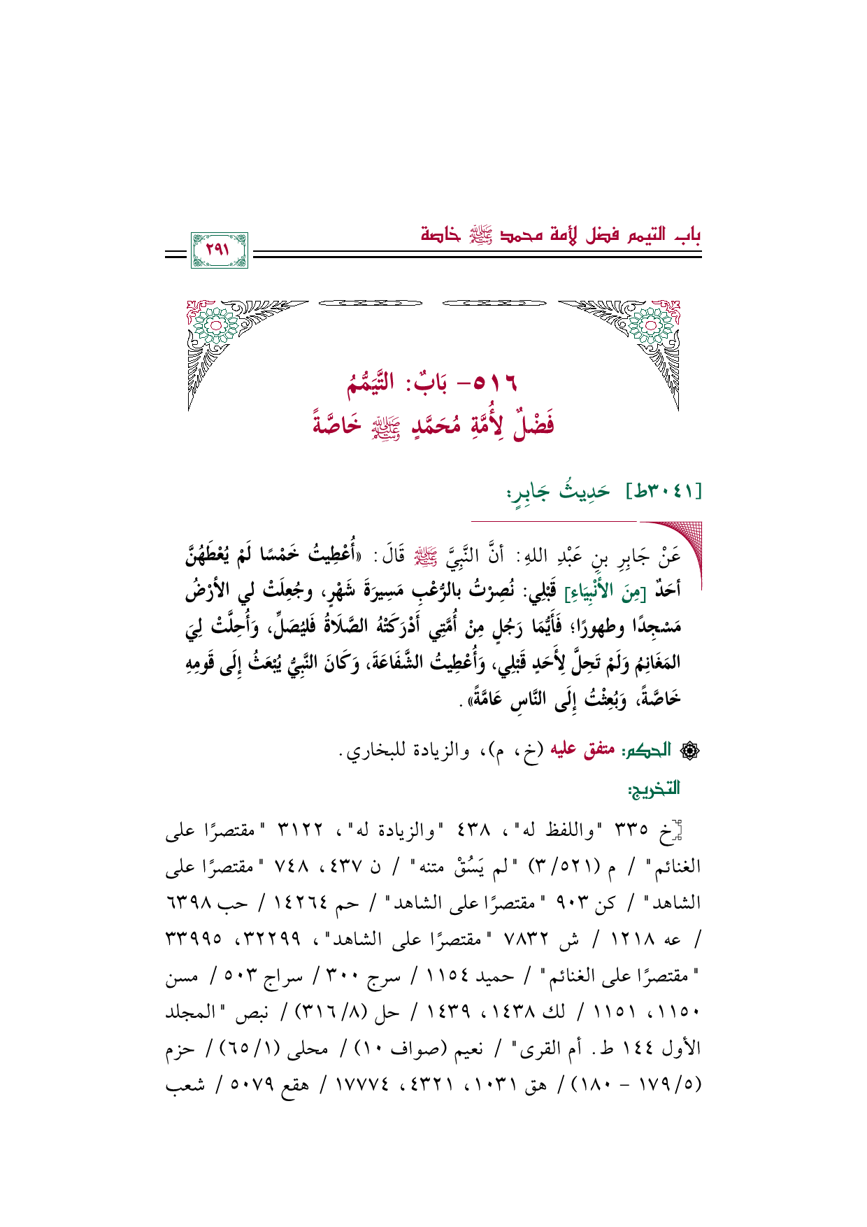 ٥١٦ - بَابٌ: التَّيَمُّمُ فَضْلٌ لِأُمَّةِ مُحَمَّدٍ صلى الله عليه وسلم خَاصَّةً