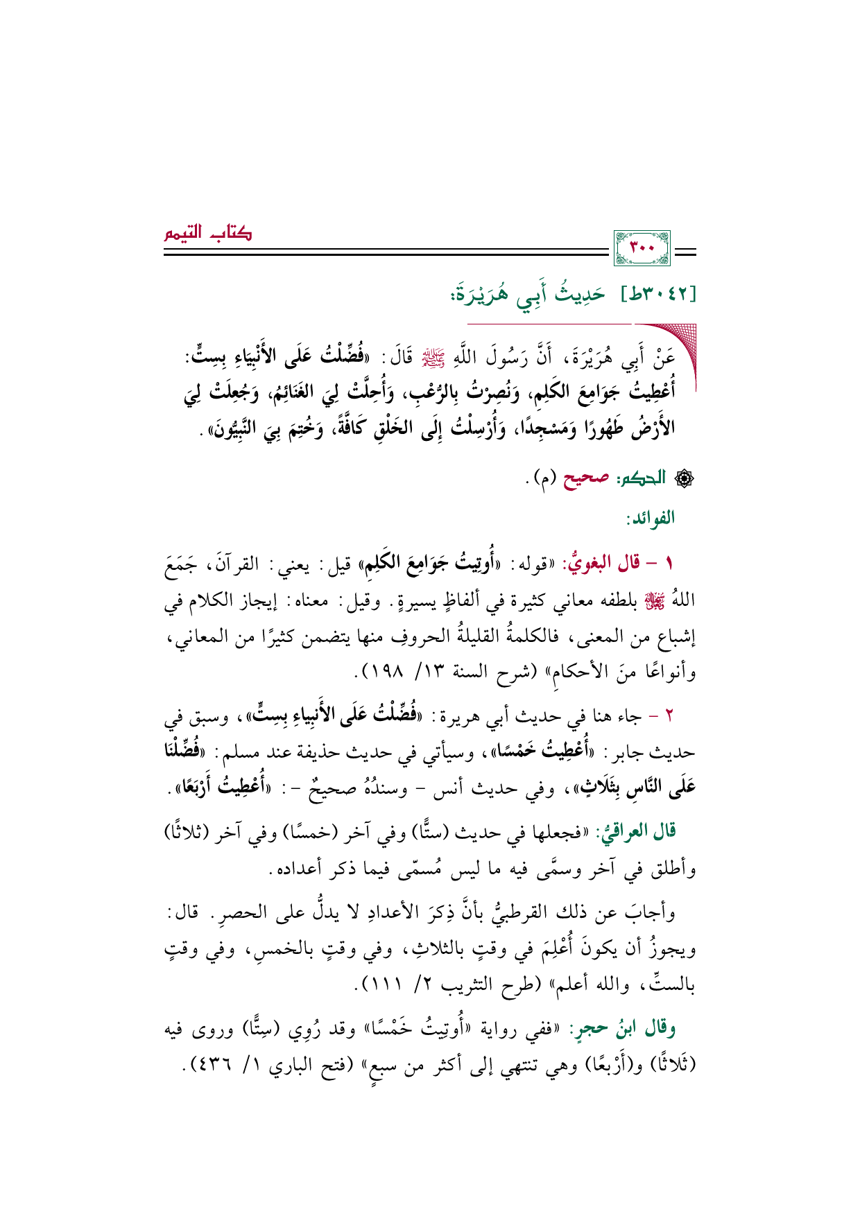 ٢ - جاء هنا في حديث أبي هريرة: ((فُضِّلْتُ عَلَى الأَنبِياءِ بِسِتٍّ))، وسبق في حديث جابر: ((أُعْطِيتُ خَمْسًا))، وسيأتي في حديث حذيفة عند مسلم: ((فُضِّلْنَا عَلَى النَّاسِ بِثَلَاثٍ))، وفي حديث أنس -وسندُهُ صحيحٌ-: ((أُعْطِيتُ أَرْبَعًا)).
