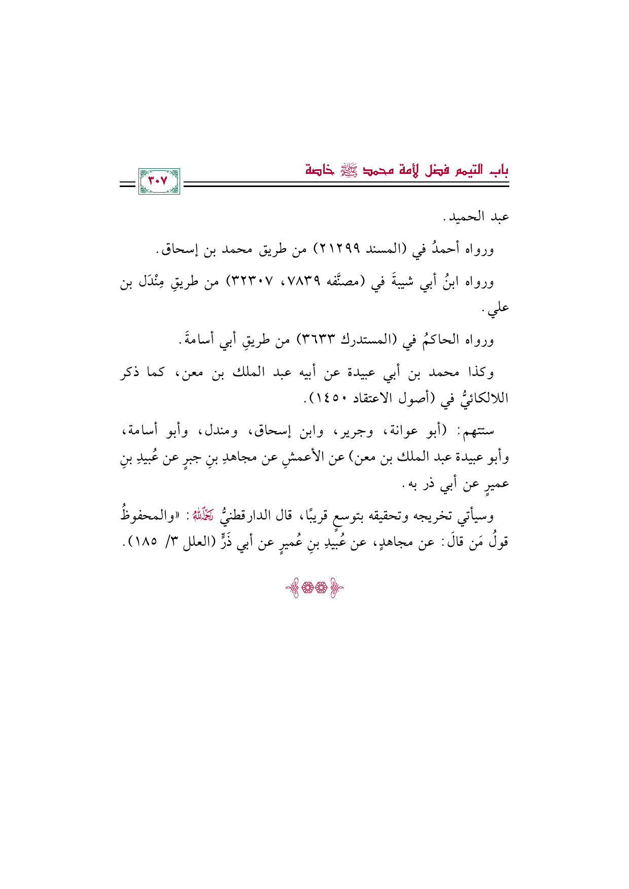 ورواه الحاكمُ في (المستدرك ٣٦٣٣) من طريقِ أبي أسامةَ.