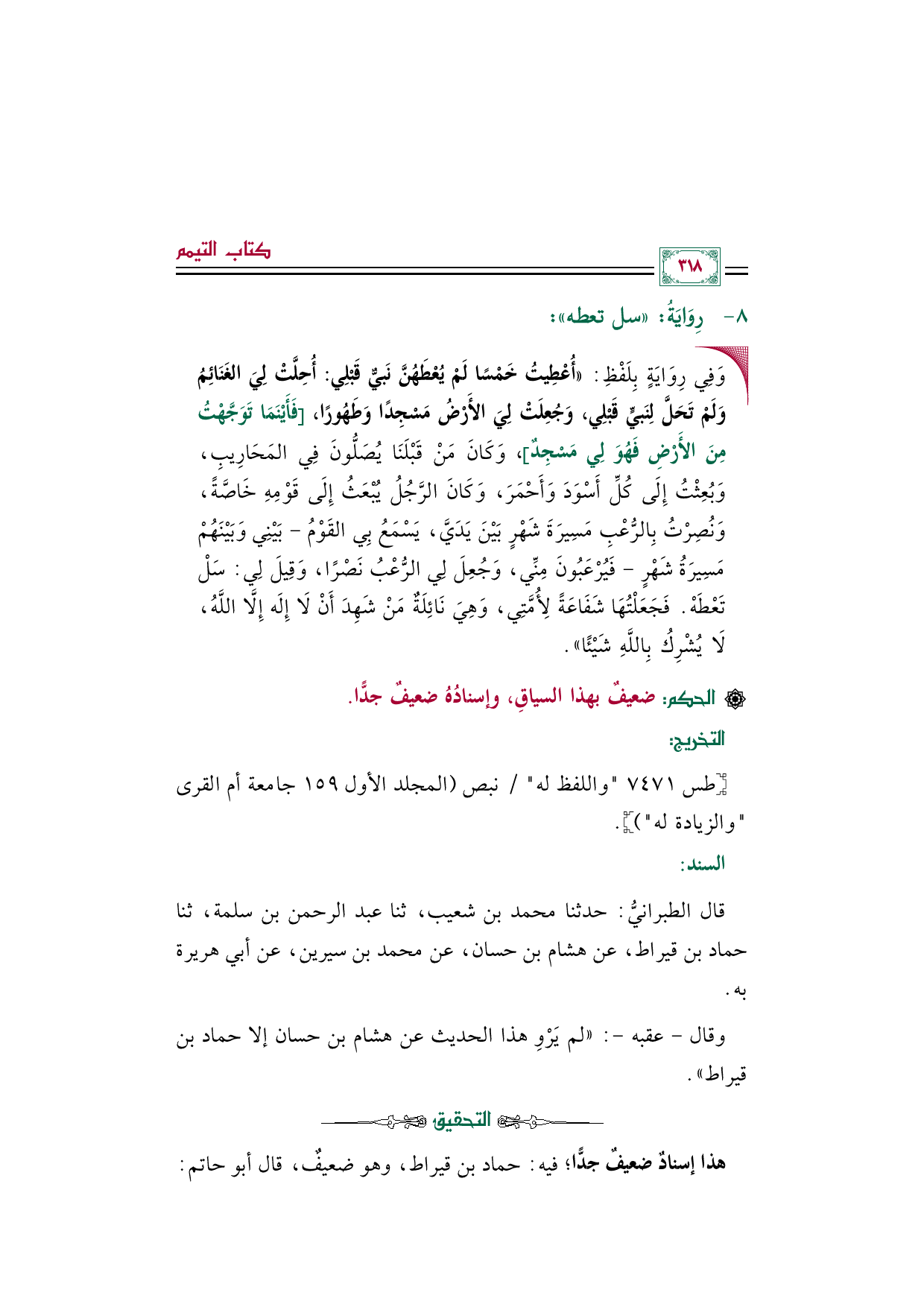 [التخريج]: [طس ٧٤٧١ (واللفظ له) / نبص (المجلد الأول ١٥٩ جامعة أم القرى والزيادة له)].