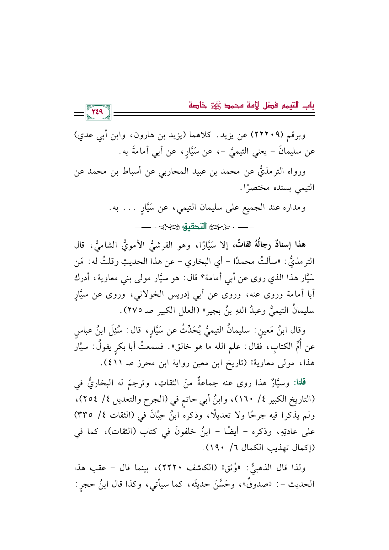 ومداره عند الجميع على سليمان التيمي، عن سَيَّارٍ ... به.