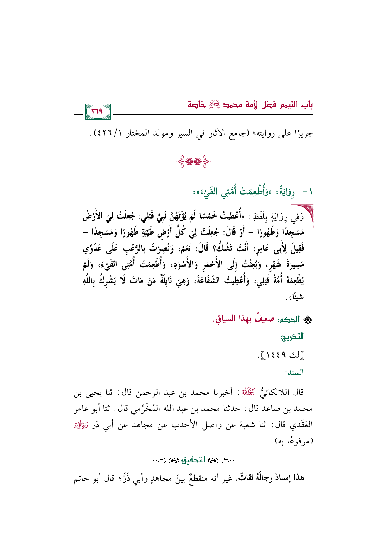 قال اللالكائيُّ رحمه الله: أخبرنا محمد بن عبد الرحمن قال: ثنا يحيى بن محمد بن صاعد قال: حدثنا محمد بن عبد الله المُخَرِّمي قال: ثنا أبو عامر العَقَدي قال: ثنا شعبة عن واصل الأحدب عن مجاهد عن أبي ذر رضي الله عنه (مرفوعًا به).