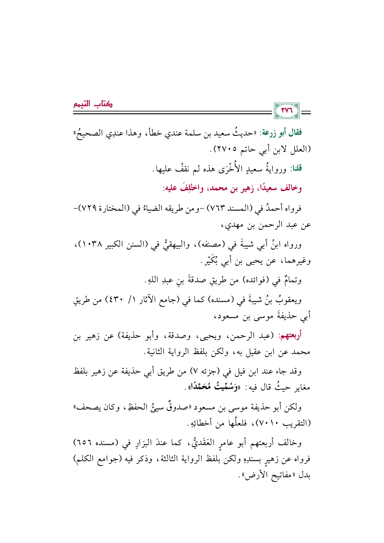 وخالف سعيدًا، زهير بن محمد، واختُلِفَ عليه: