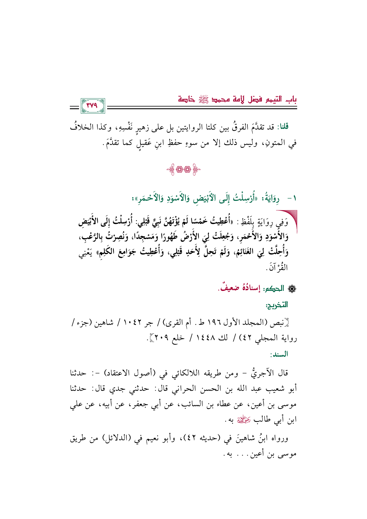 [نبص (المجلد الأول ١٩٦ ط. أم القرى) / جر ١٠٤٢/ شاهين (جزء/ رواية المجلي ٤٢) / لك ١٤٤٨/ خلع ٢٠٩].