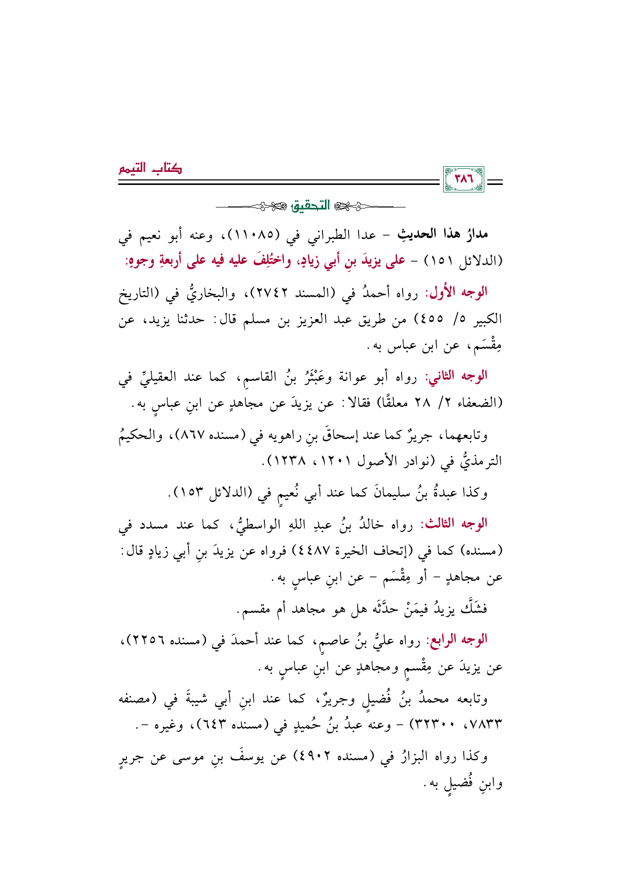 الوجه الثاني: رواه أبو عوانة وعَبْثَرُ بنُ القاسمِ، كما عند العقيليِّ في (الضعفاء ٢/ ٢٨ معلقًا) فقالا: عن يزيدَ عن مجاهدٍ عن ابنِ عباسٍ به.