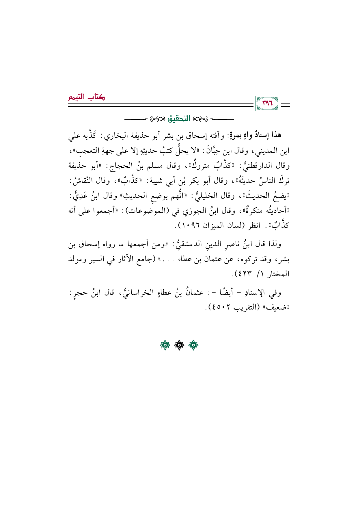 ولذا قال ابنُ ناصرِ الدينِ الدمشقيُّ: "ومن أجمعها ما رواه إسحاق بن بشر، وقد تركوه، عن عثمان بن عطاء ... " (جامع الآثار في السير ومولد المختار ١/ ٤٢٣).