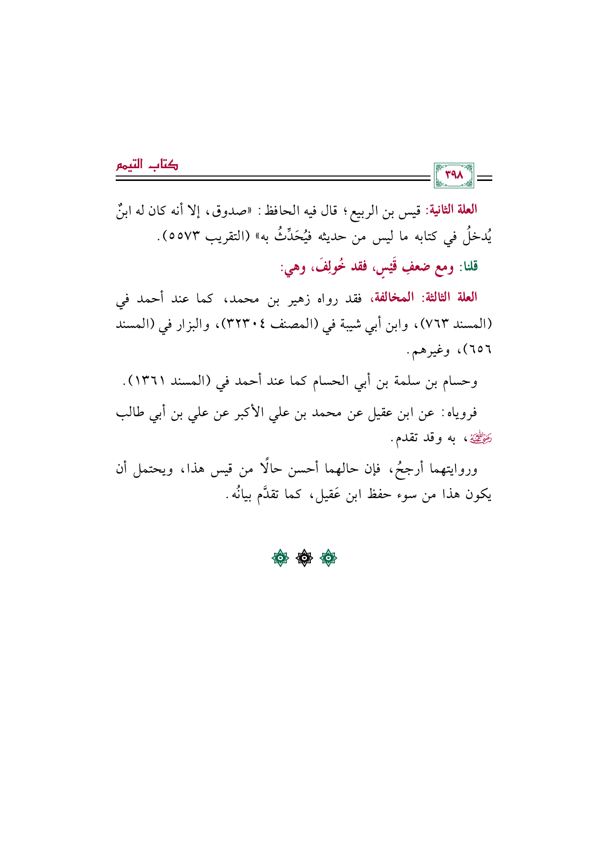 وروايتهما أرجحُ، فإن حالهما أحسن حالًا من قيس هذا، ويحتمل أن يكون هذا من سوء حفظ ابن عَقيل، كما تقدَّم بيانُه.
