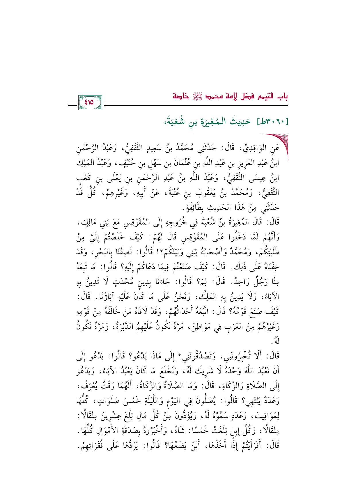 ٣٠٦٠ - حَدِيثُ المُغِيرَةِ بنِ شُعْبَةَ: