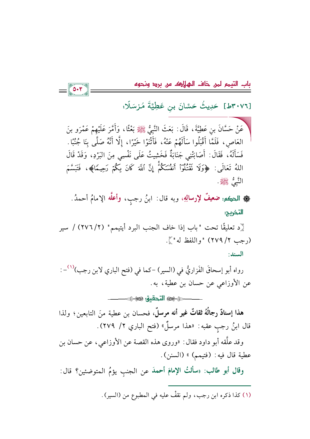[د تعليقًا تحت (باب إذا خاف الجنب البرد أيتيمم) (٢/ ٢٧٦) / سير (رجب ٢/ ٢٧٩) (واللفظ له)].