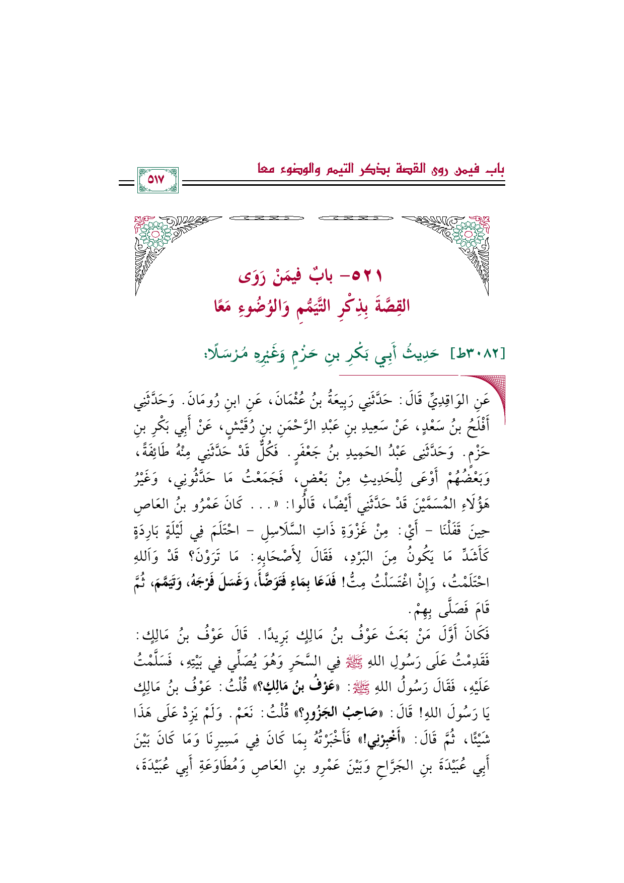 ٥٢١ - باب فيمَنْ رَوَى القِصَّةَ بِذِكْرِ التَّيَمُّمِ وَالوُضُوءِ مَعًا
