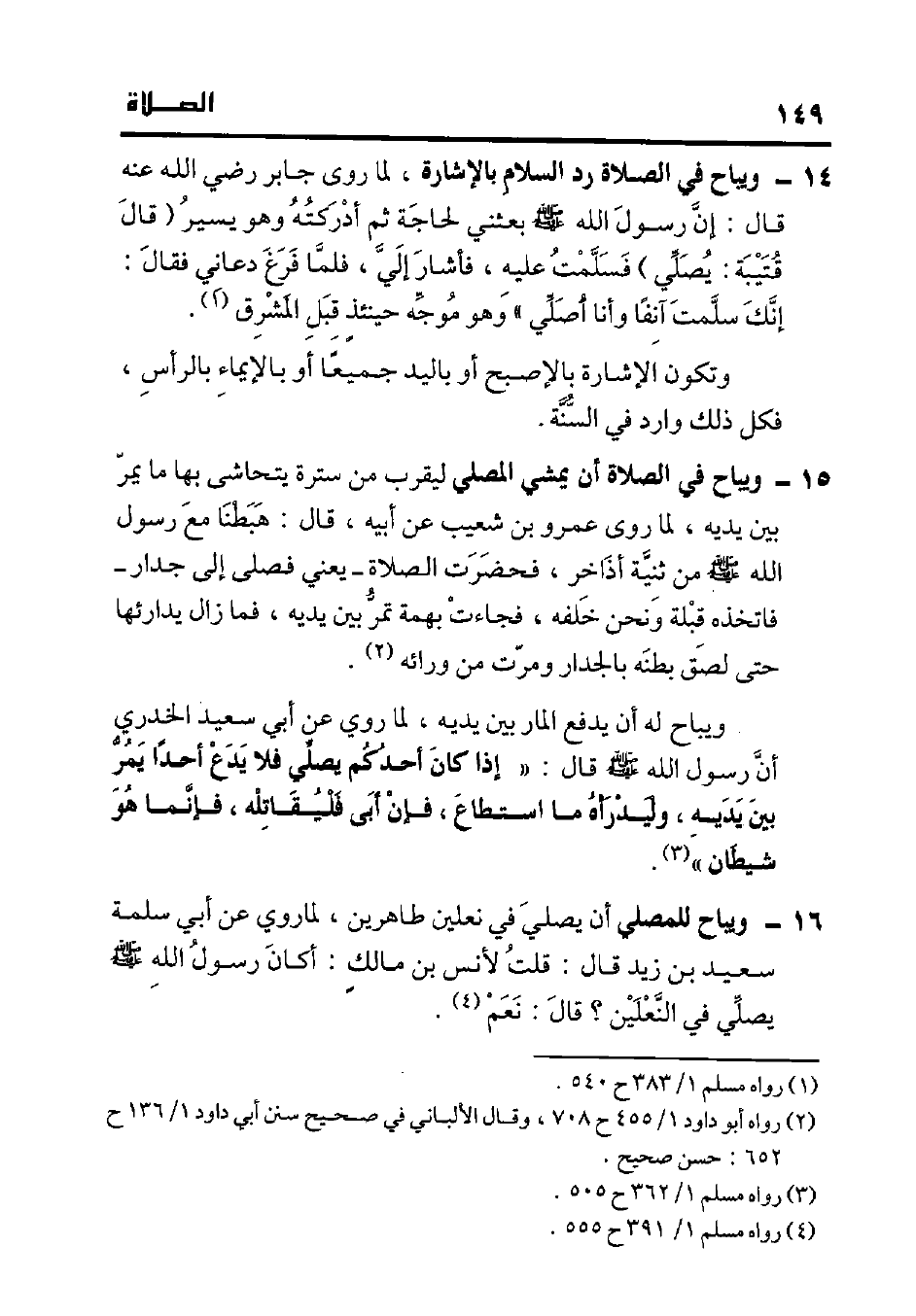 27-الالتفات عن اليمين والشمال في التسليمتين، لما روي عن عامر بن سعد عن أبيه قال: كنت أرى رسول الله صلى الله عليه وسلم يسلم عن يمينه وعن يساره حتى أرى بياض خده"4.