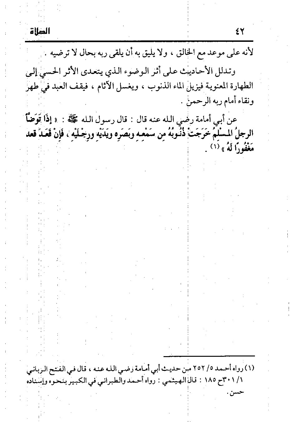 1 رواه أحمد 5/252 من حديث أب أمامة رضي الله عنه، قال في الفتح الرباني 1/301 ح185:قال الهيثمي: رواه أحمد والطبراني في الكبير بنحوه وإسناده حسن.