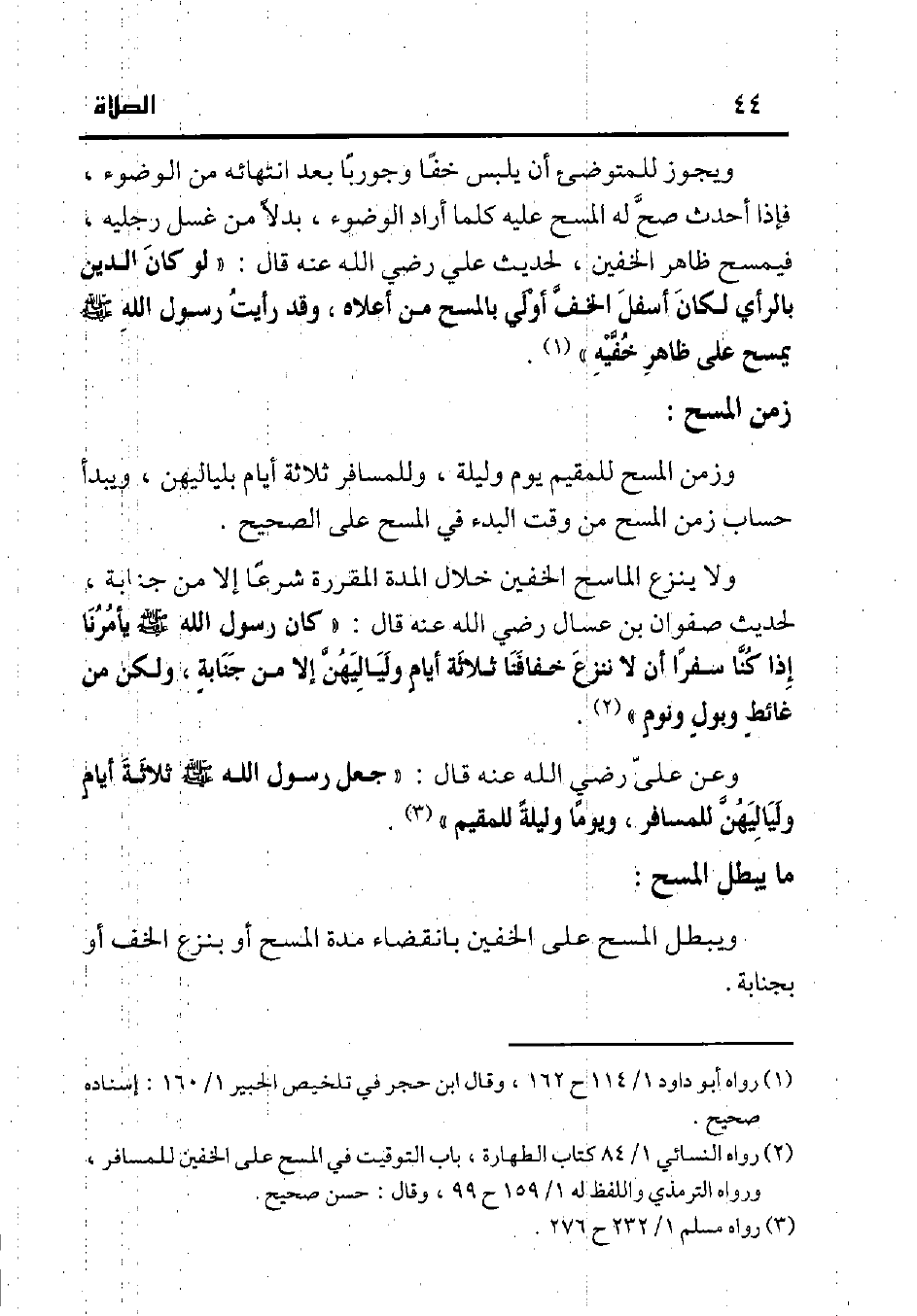 1رواه النسائي 1/84 كتاب الطهارة، باب التوقيت في المسح على الخفين للمسافر، ورواه الترمذي واللفظ له 1/159 ح99، وقال: حسن صحيح.