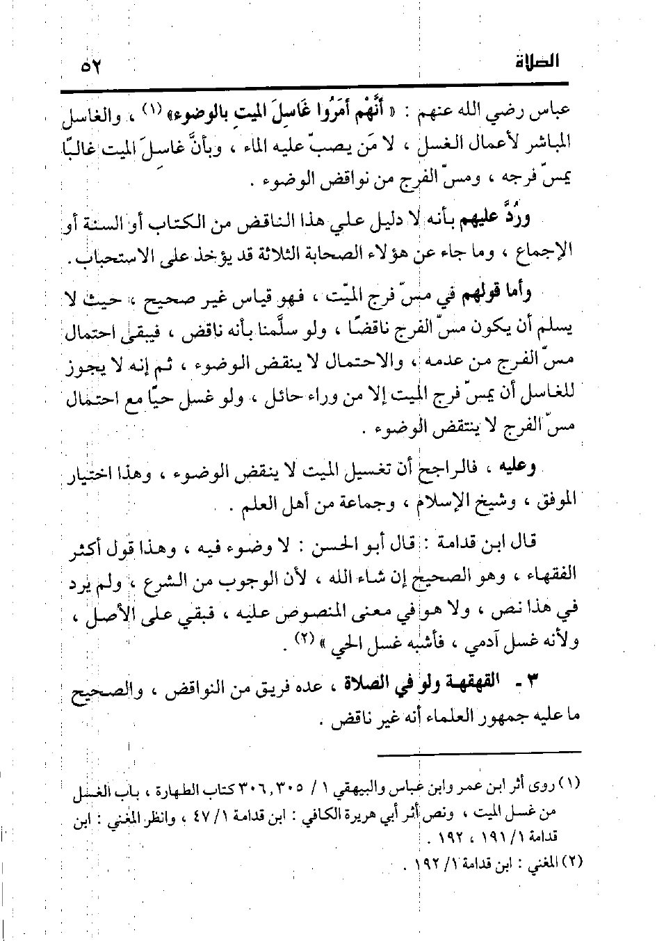 1 روى أثر ابن عمر وابن عباس والبيهقي1/305، 306 كتاب الطهارة، باب الغسل من غسل الميت، ونص أثر أبي هريرة الكافي: ابن قدامة1/47، وانظر المغني: ابن قدامة1/191، 192.