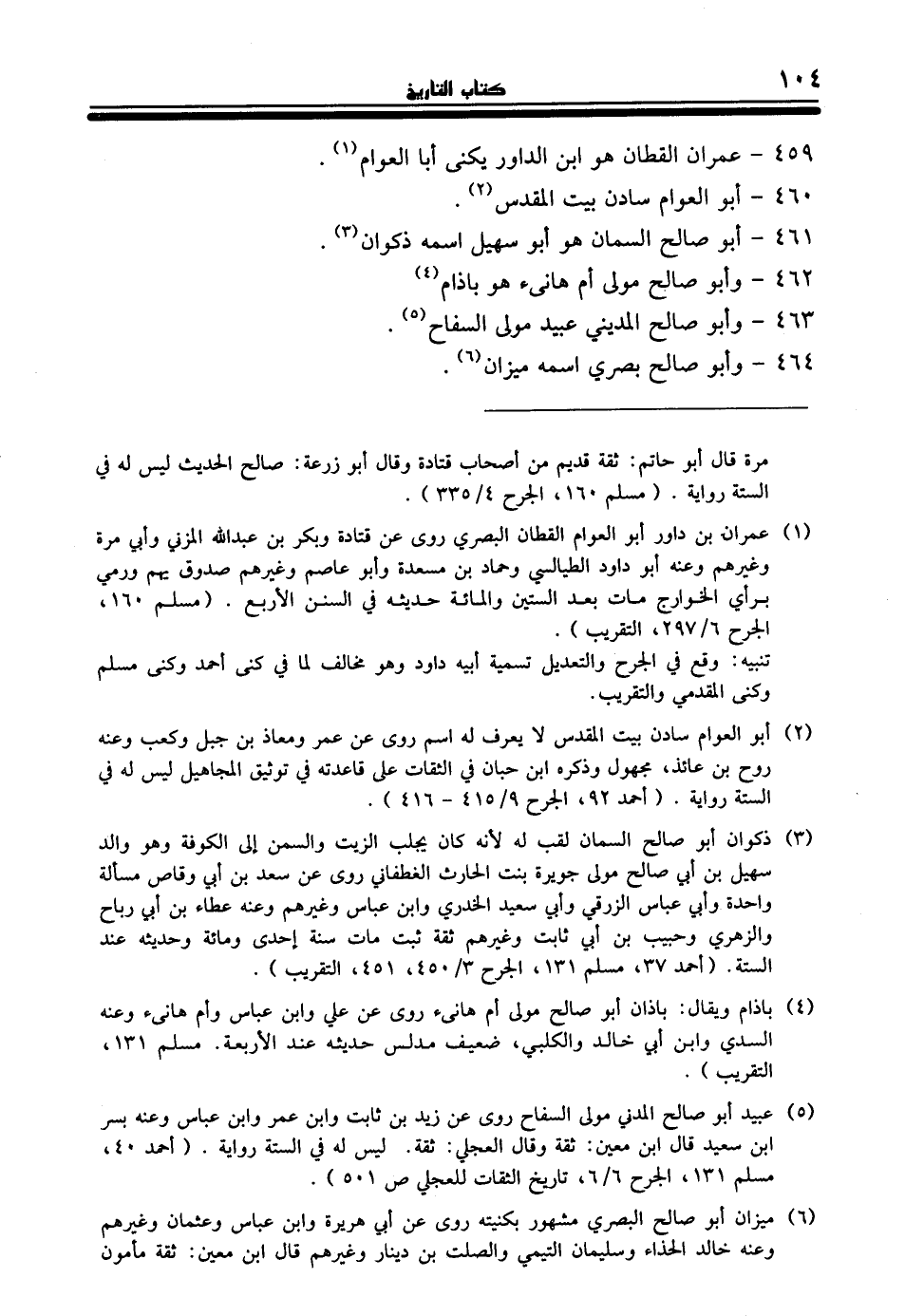 (¬6) ميزان أبو صالح البصري مشهور بكنيته روى عن أبي هريرة وابن عباس وعثمان وغيرهم وعنه خالد الحذاء وسليمان التيمي والصلت بن دينار وغيرهم قال ابن معين: ثقة مأمون