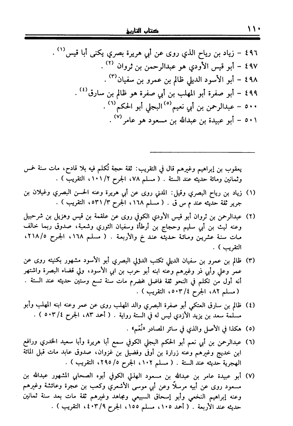 (¬3) ظالم بن عمرو بن سفيان الديلي تكتب الدؤلي البصري أبو الأسود مشهور بكنيته روى عن عمر وعلي وأبي ذر وغيرهم وعنه ابنه أبو حرب بن أبي الأسود، ولي قضاء البصرة واشتهر أنه أول من تكلم في النحو ثقة فاضل مخضرم مات سنة تسع وستين حديثه عند الستة. (مسلم 82، الجرح 4/ 503، التقريب).