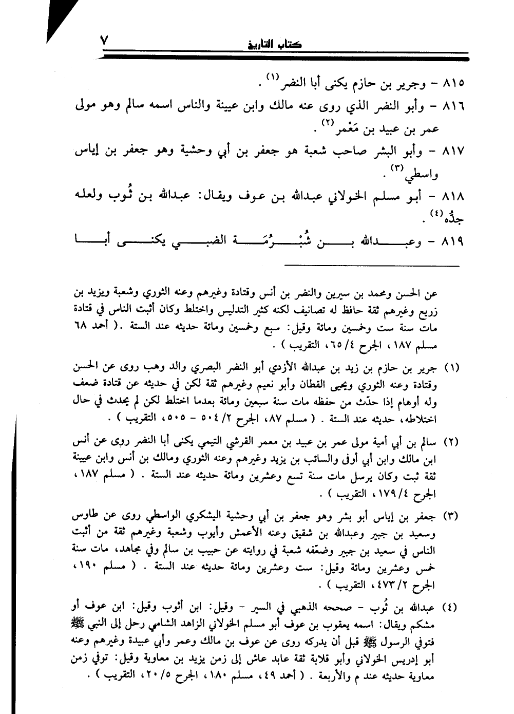 817 - وأبو البشر صاحب شعبة هو جعفر بن أبي وحشية وهو جعفر بن إياس واسطي (¬3).
