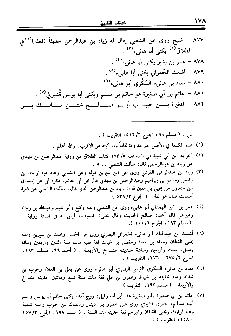 (¬4) عمر بن بشير الهمداني أبو هانىء روى عن الشعبي وعنه وكيع وأبو نعيم وعبد الله بن رجاء وغيرهم قال أحمد: صالح الحديث وقال يحيى: ضعيف، ليس له في الستة رواية. (مسلم 193، الجرح 6/ 100).