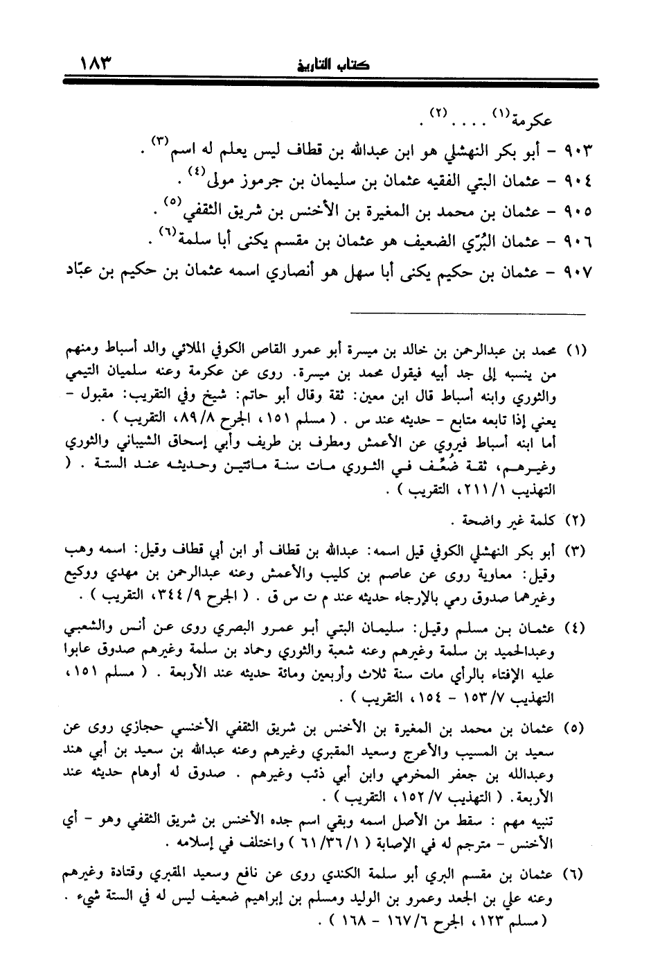 906 - عثمان البُرّي الضعيف هو عثمان بن مقسم يكنى أبا سلمة (¬6).