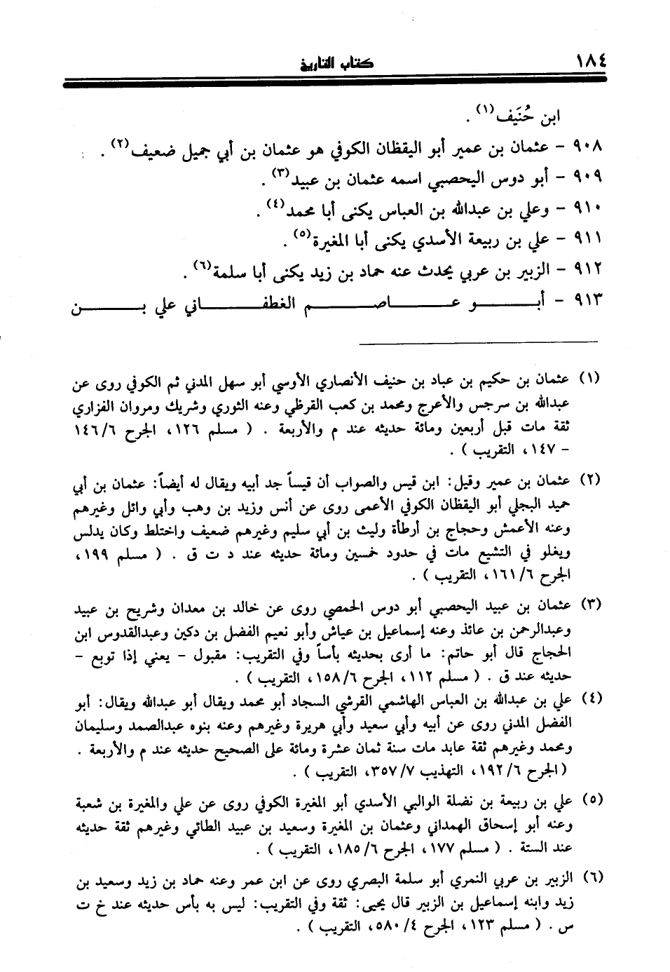 912 - الزبير بن عربي يحدث عنه حماد بن زيد يكنى أبا سلمة (¬6).