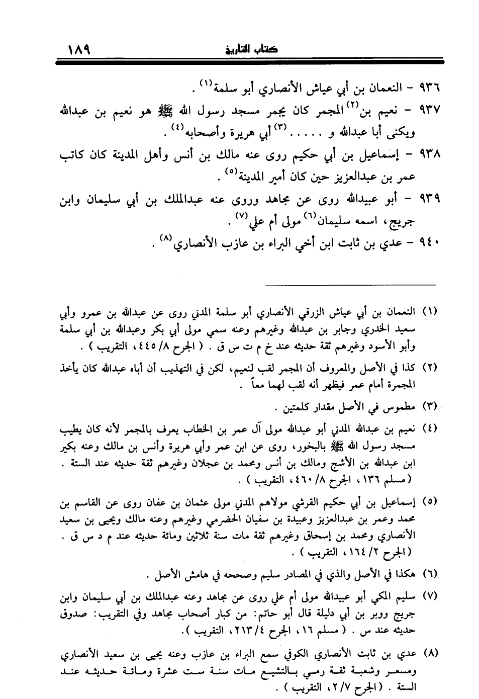 937 - نعيم بن (¬2) المجمر كان يجمر مسجد رسول الله - صلى الله عليه وسلم - هو نعيم بن عبد الله ويكنى أبا عبد الله و. . . . . (¬3) أبي هريرة وأصحابه (¬4).