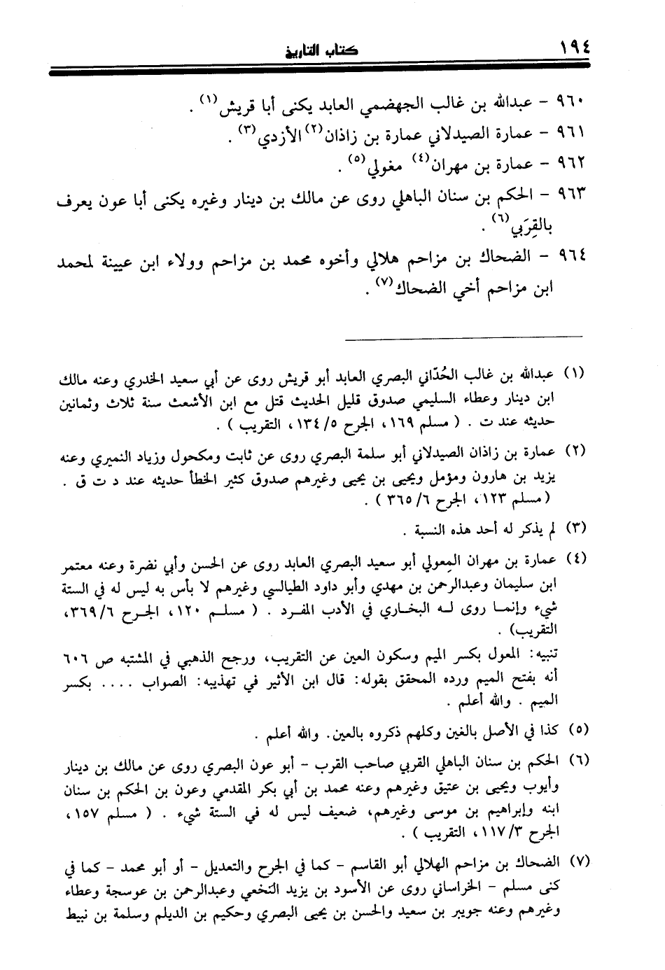 964 - الضحاك بن مزاحم هلالي وأخوه محمد بن مزاحم وولاء ابن عيينة لمحمد ابن مزاحم أخي الضحاك (¬7).