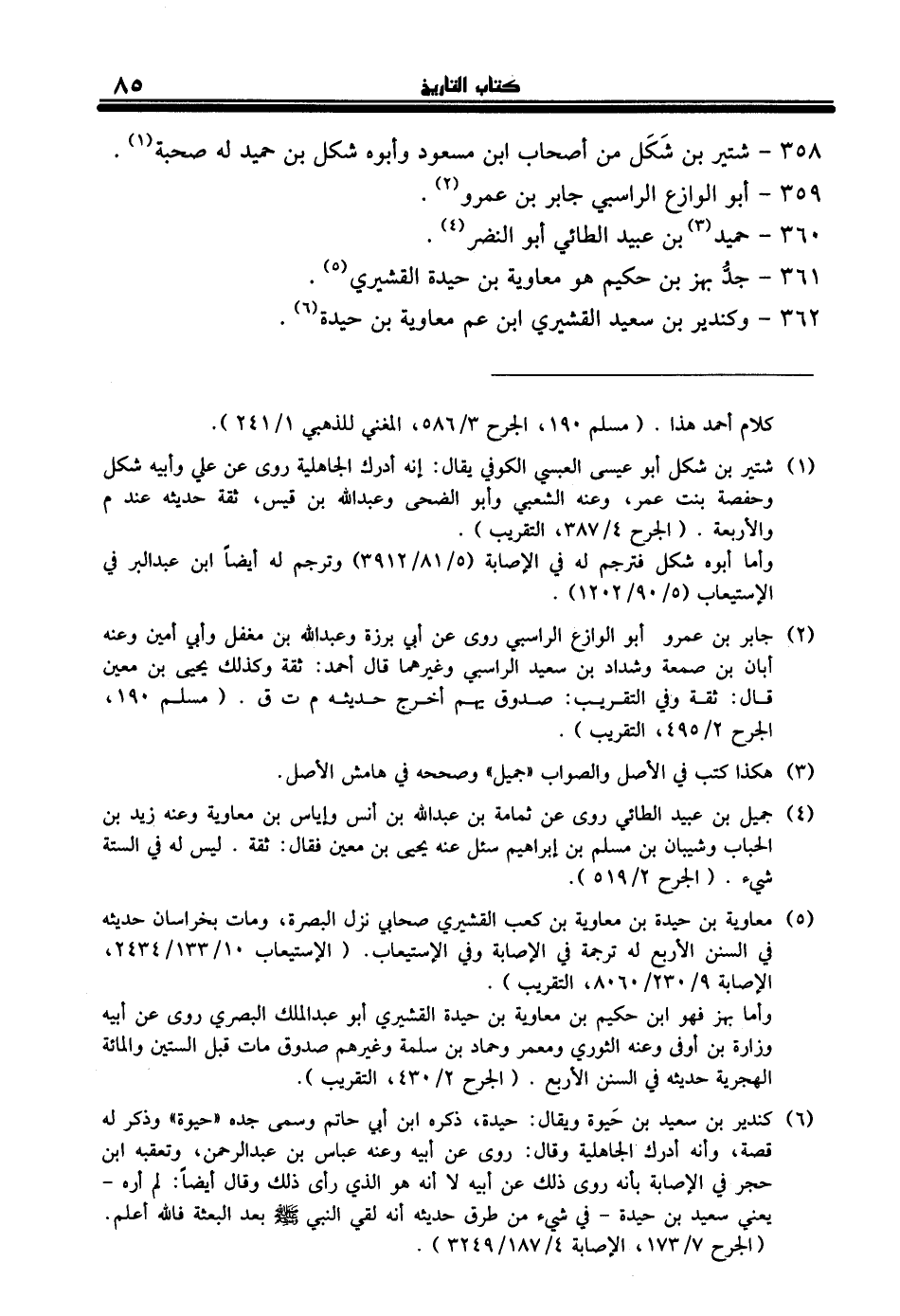 361 - جدُّ بهز بن حكيم هو معاوية بن حيدة القشيري (¬5).