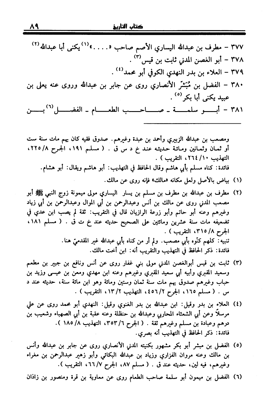 (¬2) مطرف بن عبد الله بن مطرف بن مسلم بن يسار اليساري مولى ميمونة زوج النبي - صلى الله عليه وسلم - أبو مصعب المدني روى عن مالك بن أنس وعبد الرحمن بن أبي الموال وعبد الرحمن بن أبي زياد وغيرهم وعنه أبو حاتم وأبو زرعة الرازيان قال في التقريب: ثقة لم يصب ابن عدي في تضعيفه مات سنة عشرة ومائتين علي الصحيح حديثه عند خ ت ق. (مسلم 181، الجرح 8/ 315، التقريب).