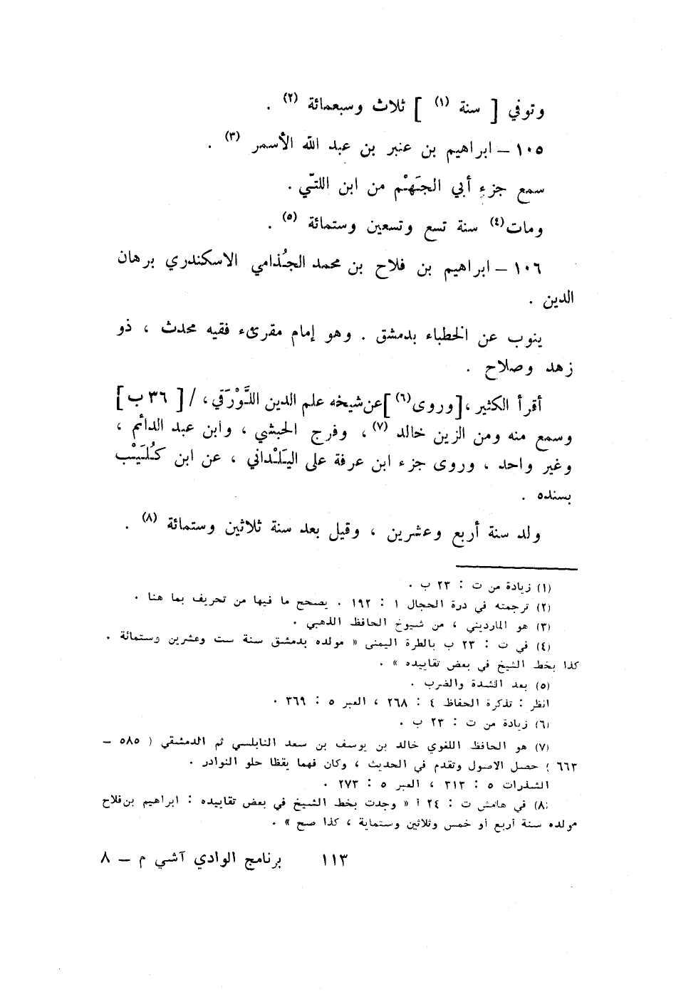 106 - إِبْرَاهِيم بن فلاح بن مُحَمَّد الجذامي الإسكندري برهَان الدّين