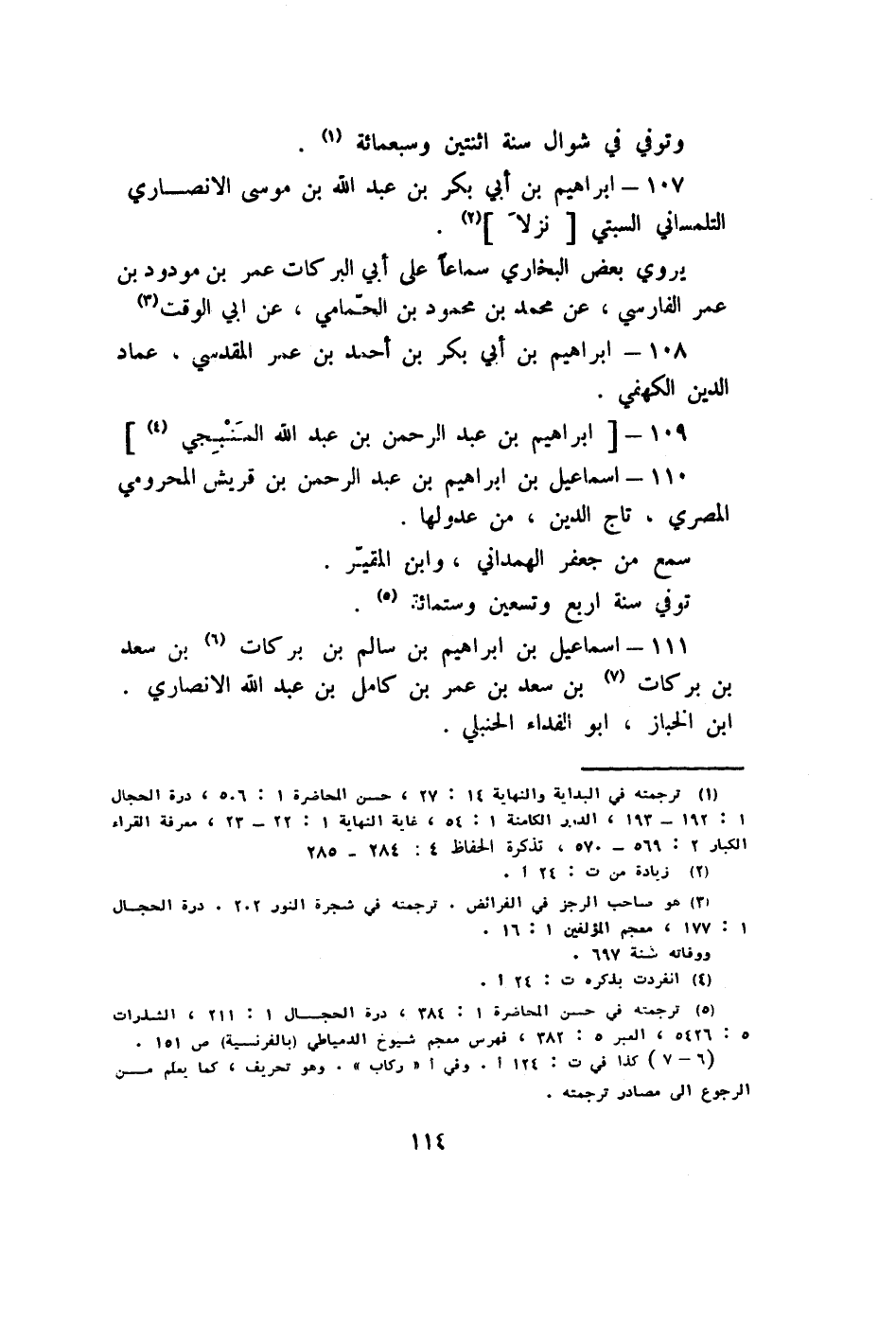 111 - إِسْمَاعِيل بن إِبْرَاهِيم بن سَالم بن بَرَكَات بن سعد بن بَرَكَات بن سعد بن عمر بن كَامِل بن عبد الله الْأنْصَارِيّ ابْن الخباز أَبُو الْفِدَاء الْحَنْبَلِيّ