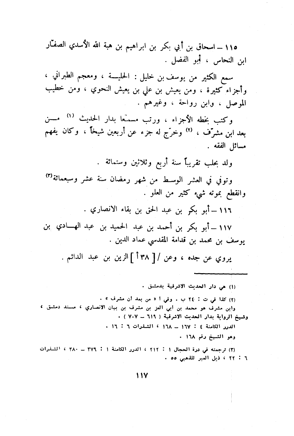 117 - أَبُو بكر بن أَحْمد بن عبد الحميد بن عبد الْهَادِي بن يُوسُف بن مُحَمَّد بن قدامَة الْمَقْدِسِي عماد الدّين