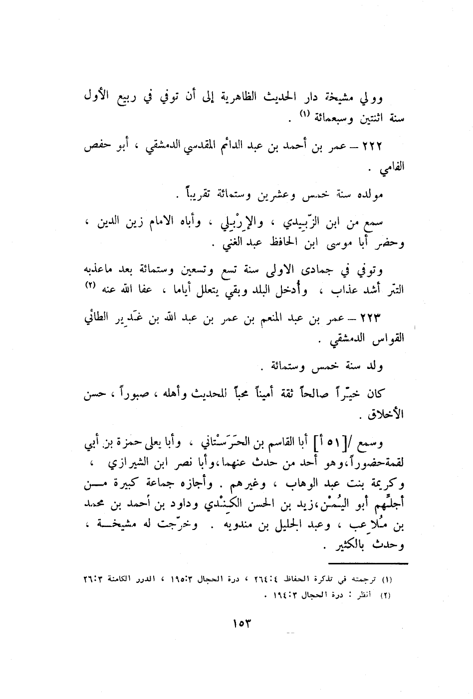 222 - عمر بن أَحْمد بن عبد الدَّائِم الْمَقْدِسِي الدِّمَشْقِي أَبُو حَفْص الفامي