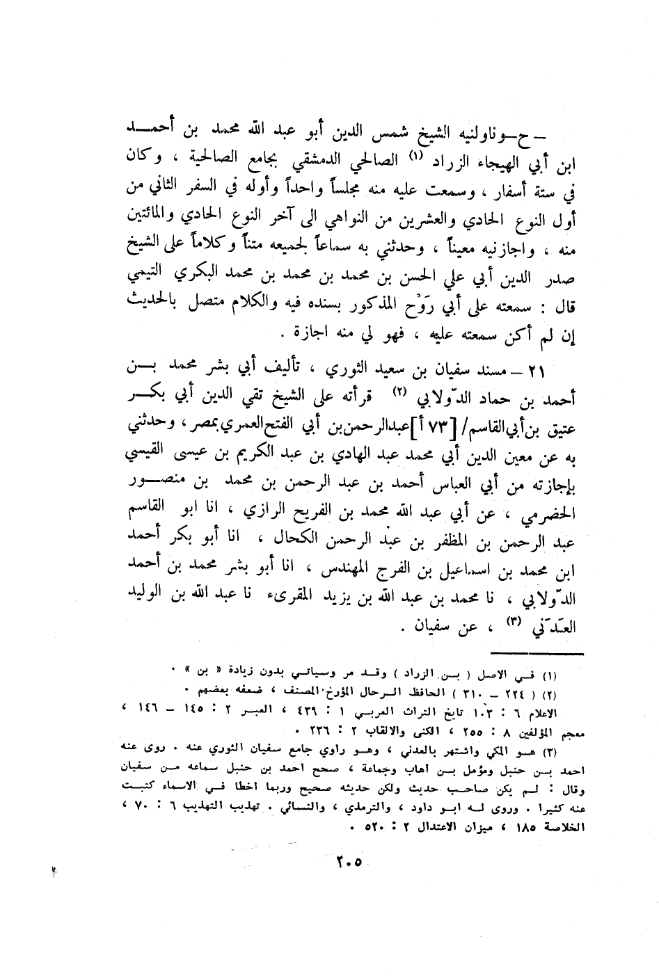 21 - مُسْند سُفْيَان بن سعيد الثَّوْريّ تأليف ابي بشر مُحَمَّد بن أَحْمد بن حَمَّاد الدولابي قرأته على الشَّيْخ تَقِيّ الدّين ابي بكر عَتيق بن ابي الْقَاسِم عبد الرَّحْمَن بن ابي الْفَتْح الْعمريّ بِمصْر وحَدثني بِهِ عَن معِين الدّين ابي مُحَمَّد عبد الْهَادِي بن عبد الْكَرِيم بن عِيسَى الْقَيْسِي بإجازته من ابي الْعَبَّاس أَحْمد بن عبد الرَّحْمَن بن مُحَمَّد بن مَنْصُور الْحَضْرَمِيّ عَن ابي عبد الله مُحَمَّد بن الفريح الرَّازِيّ أَنا أَبُو الْقَاسِم عبد الرَّحْمَن بن المظفر بن عبد الرَّحْمَن الكحال أَنا أَبُو بكر أَحْمد ابْن مُحَمَّد بن إِسْمَاعِيل بن الْفرج المهندس أَنا أَبُو بشر مُحَمَّد بن أَحْمد الدولابي نَا مُحَمَّد بن عبد الله بن يزِيد الْمُقْرِئ نَا عبد الله بن الْوَلِيد الْعَدنِي عَن سُفْيَان