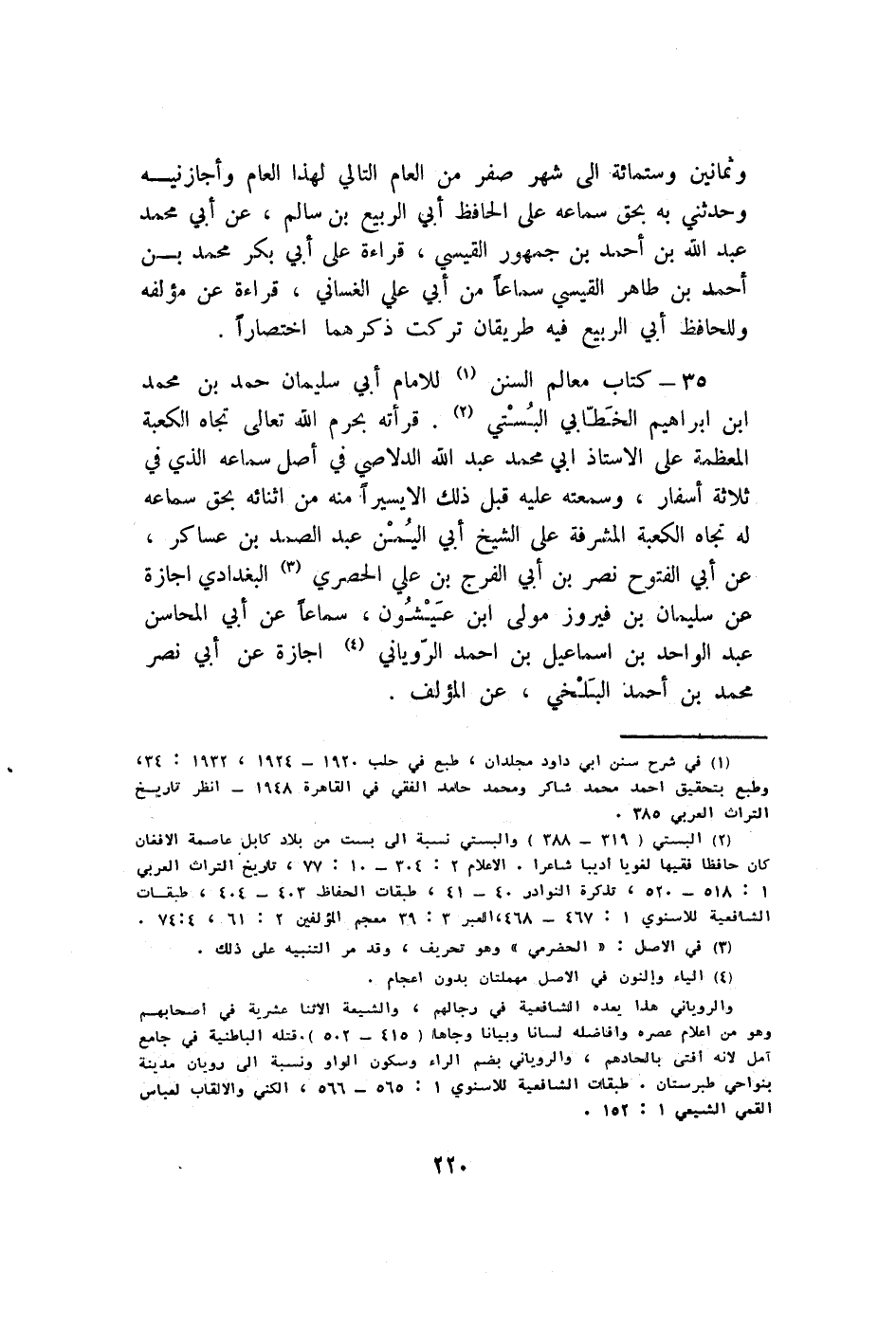 35 - كتاب معالم السّنَن للْإِمَام ابي سُلَيْمَان حمد بن مُحَمَّد ابْن إِبْرَاهِيم الْخطابِيّ البستي