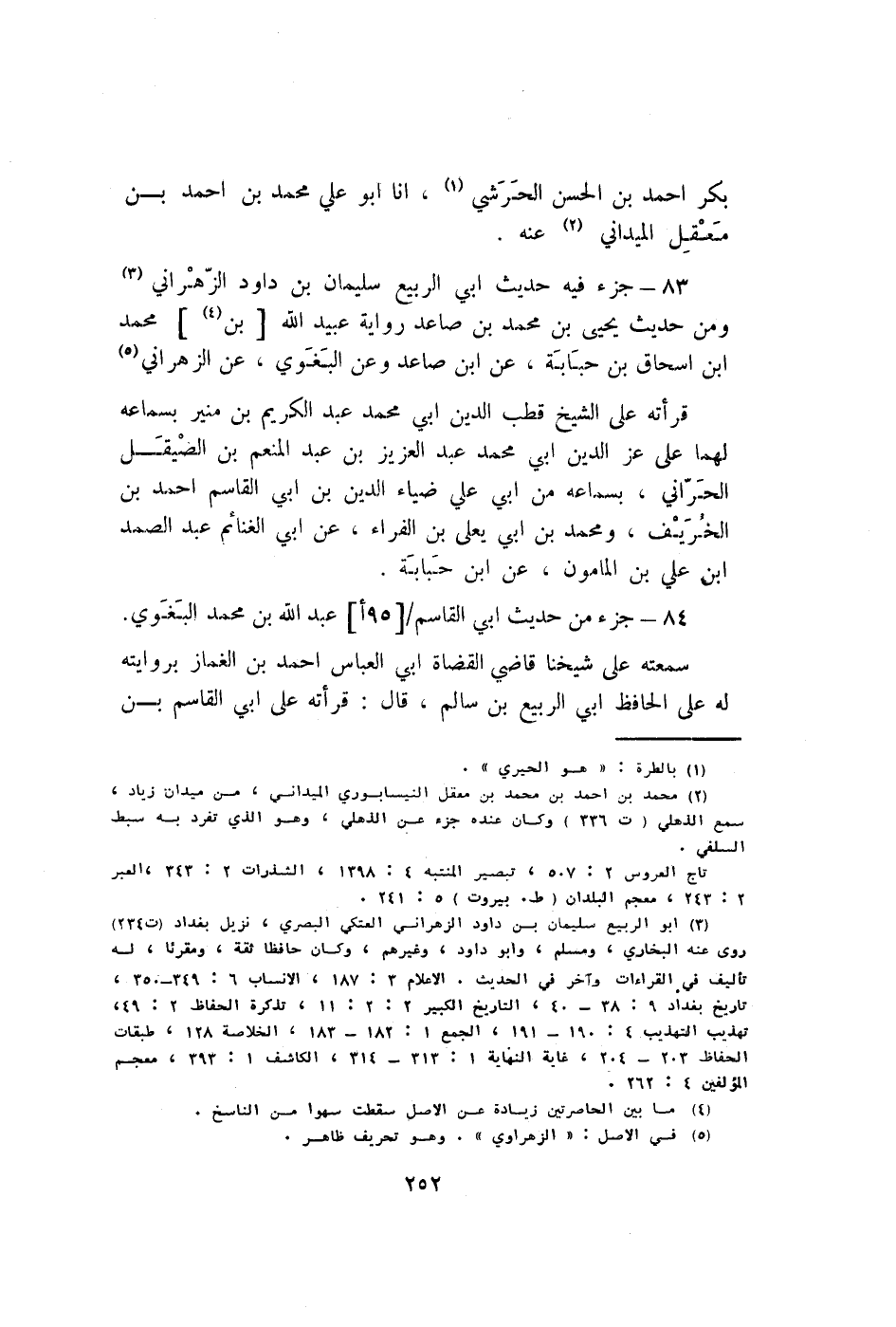83 - جُزْء فِيهِ حَدِيث ابي الرّبيع سُلَيْمَان بن دَاوُد الزهْرَانِي وَمن حَدِيث يحيى بن مُحَمَّد بن صاعد رِوَايَة عبيد الله بن مُحَمَّد بن إِسْحَاق بن حبابة عَن ابْن صاعد وَعَن الْبَغَوِيّ عَن الزهْرَانِي