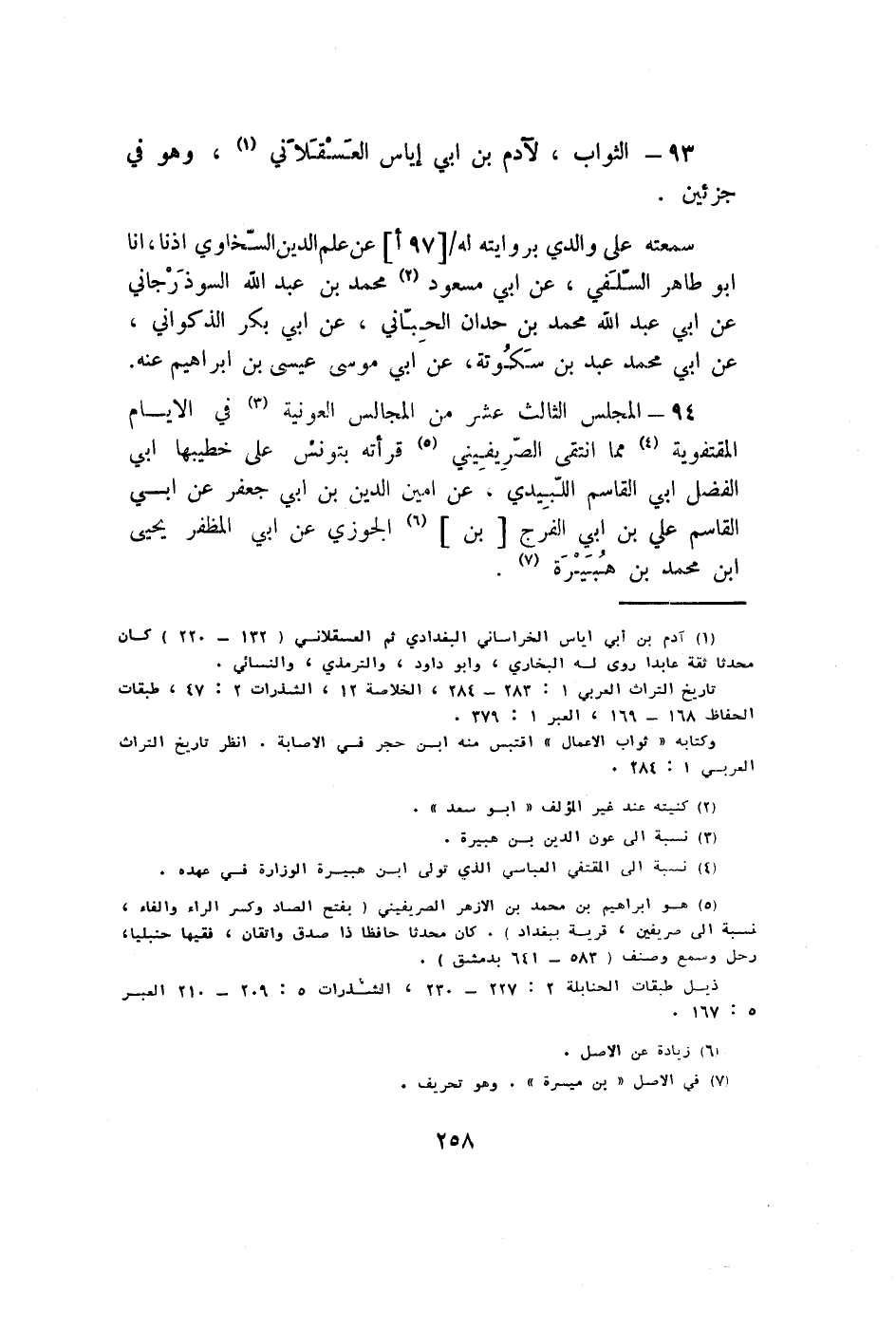 93 - الثَّوَاب لآدَم بن ابي إِيَاس الْعَسْقَلَانِي وَهُوَ فِي جزئين