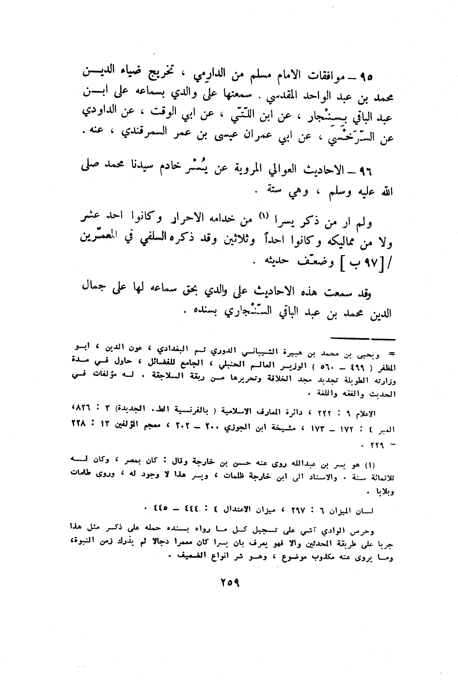 96 - الْأَحَادِيث العوالي المروية عَن يسر خَادِم سيدنَا مُحَمَّد صلى الله عَلَيْهِ وَسلم وَهِي سِتَّة