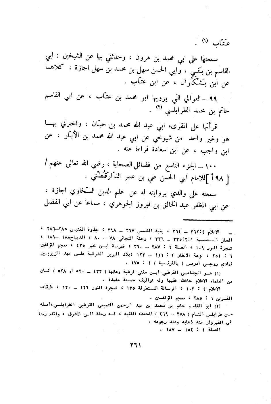 99 - العوالي الَّتِي يَرْوِيهَا أَبُو مُحَمَّد بن عتاب عَن ابي الْقَاسِم حَاتِم بن مُحَمَّد الطرابلسي