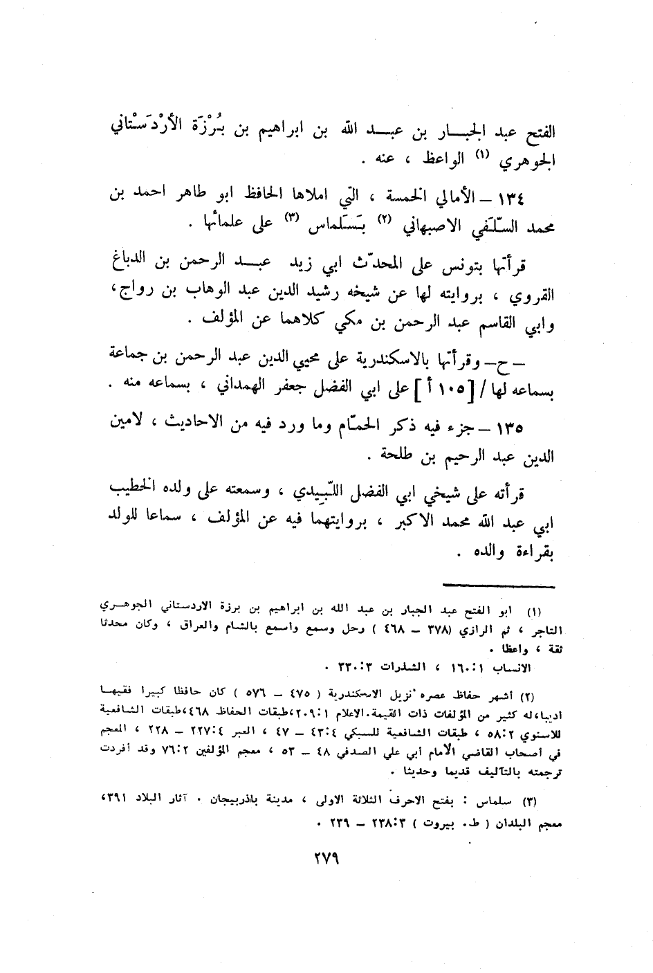 134 - الأمالي الْخَمْسَة الَّتِي أملاها الْحَافِظ أَبُو طَاهِر أَحْمد بن مُحَمَّد السلَفِي الْأَصْبَهَانِيّ بسلماس على علمائها