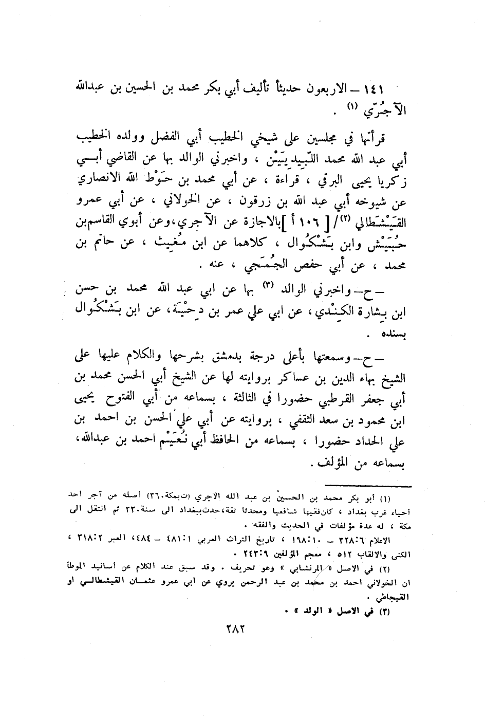 141 - الْأَرْبَعُونَ حَدِيثا تأليف ابي بكر مُحَمَّد بن الْحُسَيْن بن عبد الله الْآجُرِيّ