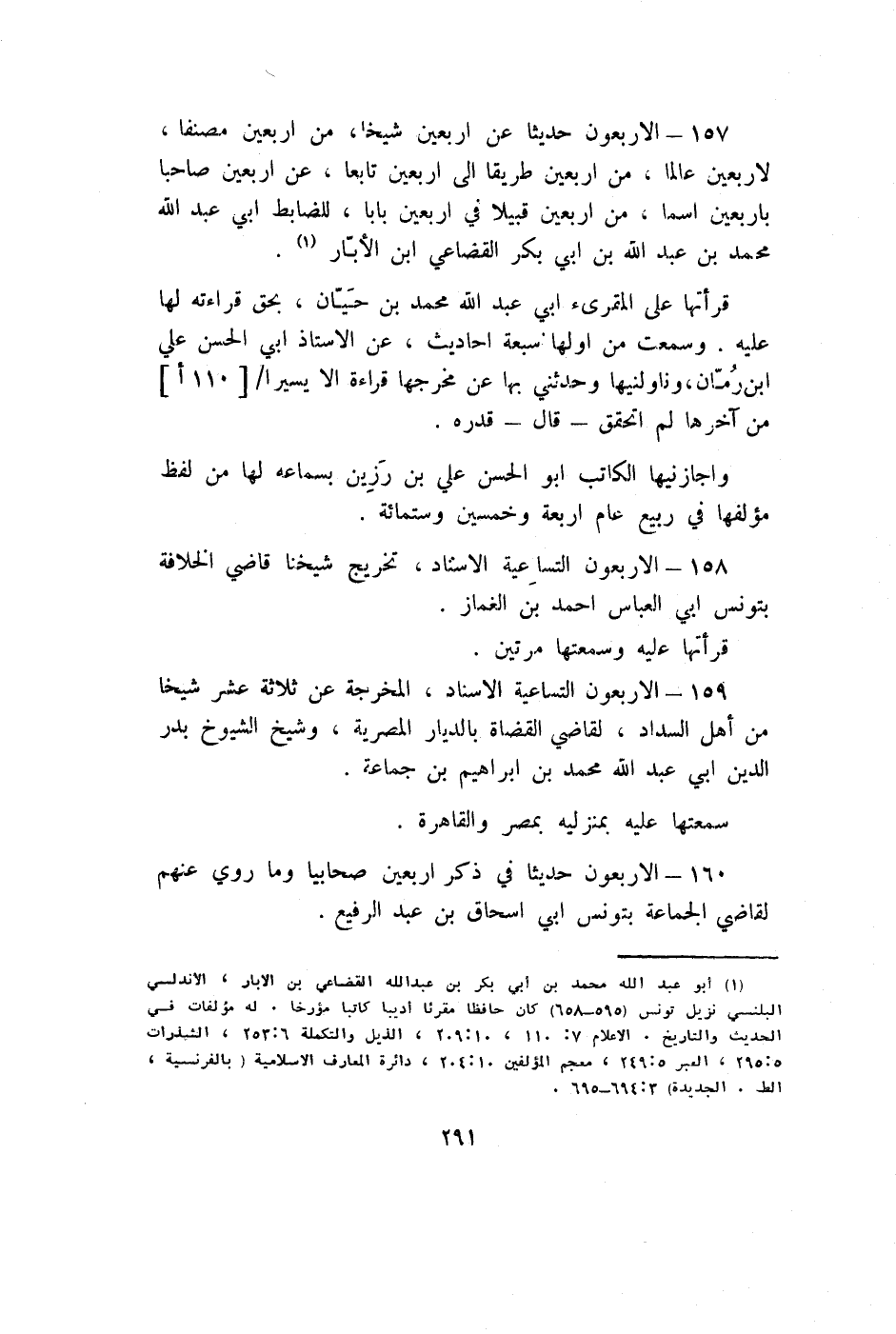 157 - الْأَرْبَعُونَ حَدِيثا عَن أَرْبَعِينَ شَيخا من أَرْبَعِينَ مصنفا لأربعين عَالما من اربعين طَرِيقا إِلَى أَرْبَعِينَ تَابعا عَن أَرْبَعِينَ صاحبا بِأَرْبَعِينَ اسْما من اربعين قبيلا فِي أَرْبَعِينَ بَابا للضابط ابي عبد الله مُحَمَّد بن عبد الله بن ابي بكر الْقُضَاعِي ابْن الْأَبَّار