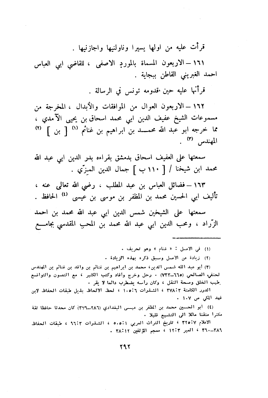 162 - الْأَرْبَعُونَ العوال من الموافقات والأبدال المخرجة من مسموعات الشَّيْخ عفيف الدّين ابي مُحَمَّد إِسْحَاق بن يحيى الْآمِدِيّ مِمَّا خرجه أَبُو عبد الله مُحَمَّد بن إِبْرَاهِيم بن غَنَائِم بن المهندس