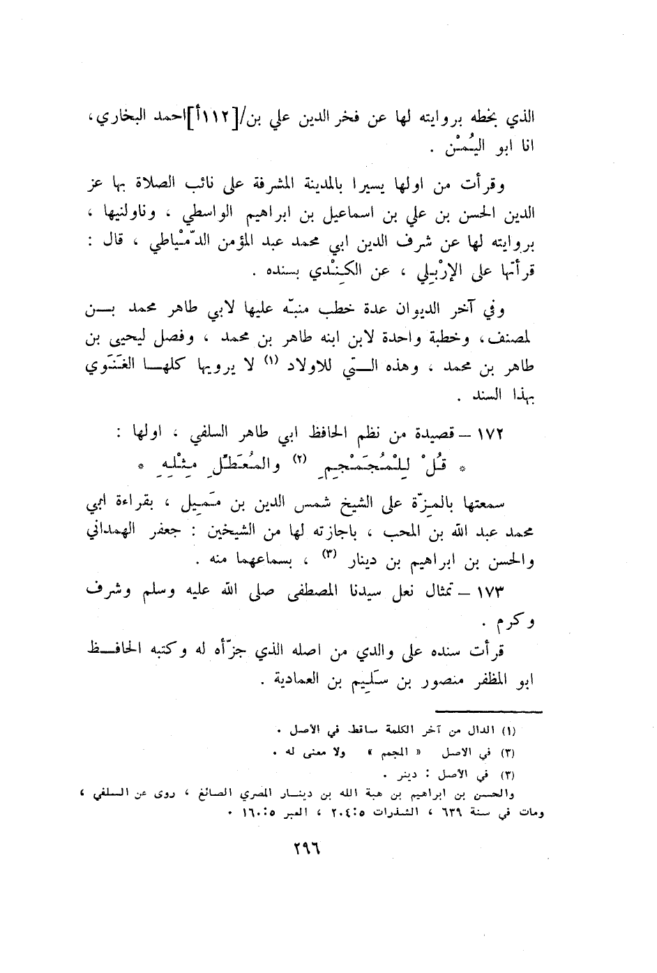172 - قصيدة من نظم الْحَافِظ ابي طَاهِر السلَفِي أَولهَا