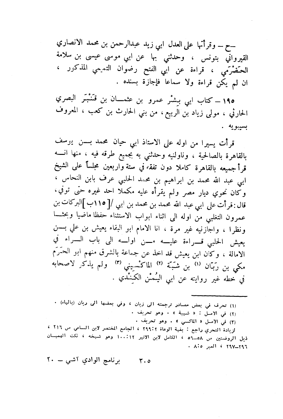 195 - كتاب ابي بشر عَمْرو بن عُثْمَان بن قنبر الْبَصْرِيّ الْحَارِثِيّ مولى زِيَاد بن الرّبيع من بني الْحَارِث بن كَعْب الْمَعْرُوف بسيبويه