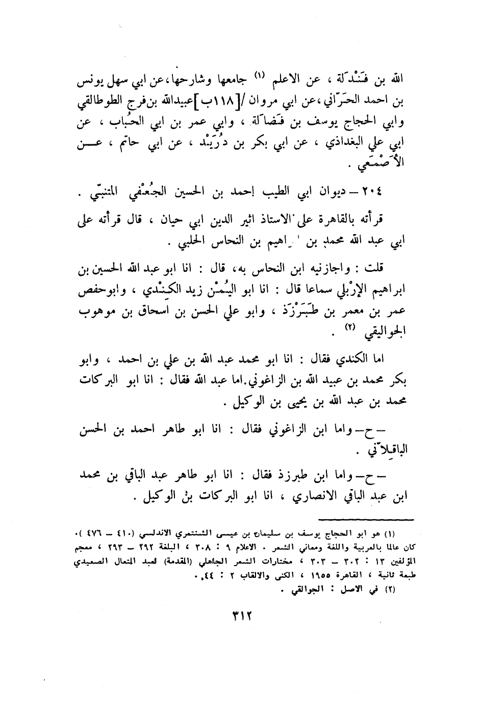 أما الْكِنْدِيّ فَقَالَ أَنا أَبُو مُحَمَّد عبد الله بن عَليّ بن أَحْمد وَأَبُو بكر مُحَمَّد بن عبيد الله بن الزَّاغُونِيّ أما عبد الله فَقَالَ أَنا أَبُو البركات مُحَمَّد بن عبد الله بن يحيى بن الْوَكِيل