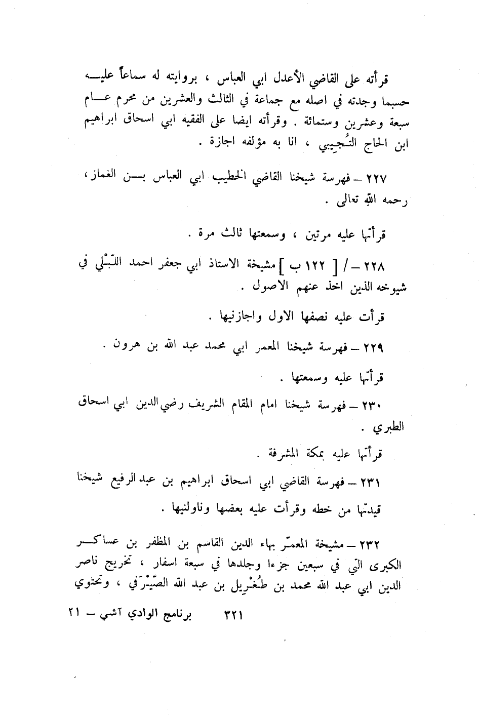 227 - فهرسة شَيخنَا القَاضِي الْخَطِيب ابي الْعَبَّاس بن الغماز رَحمَه الله تَعَالَى