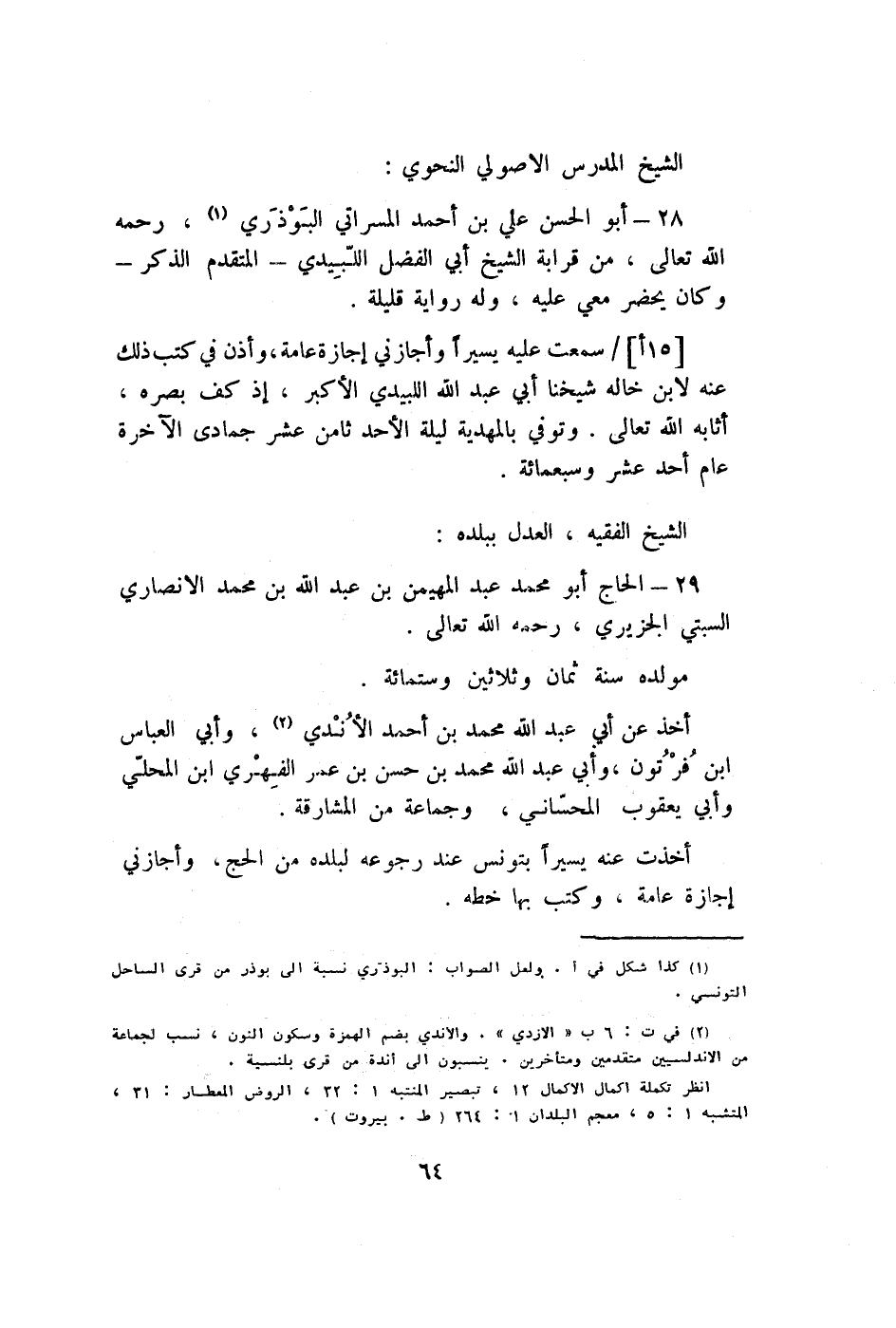 28 - أَبُو الْحسن عَليّ بن أَحْمد المسراتي البوذري رَحمَه الله تَعَالَى من قرَابَة الشَّيْخ أبي الْفضل اللبيدي الْمُتَقَدّم الذّكر وَكَانَ يحضر معي عَلَيْهِ وَله رِوَايَة قَليلَة