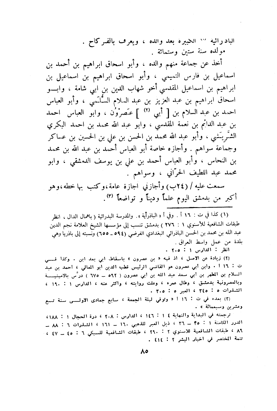سَمِعت عَلَيْهِ (24 ب) وأجازني إجَازَة عَامَّة وَكتب بهَا خطه وَهُوَ أكبر من بِدِمَشْق الْيَوْم علما ودينا وتواضعا