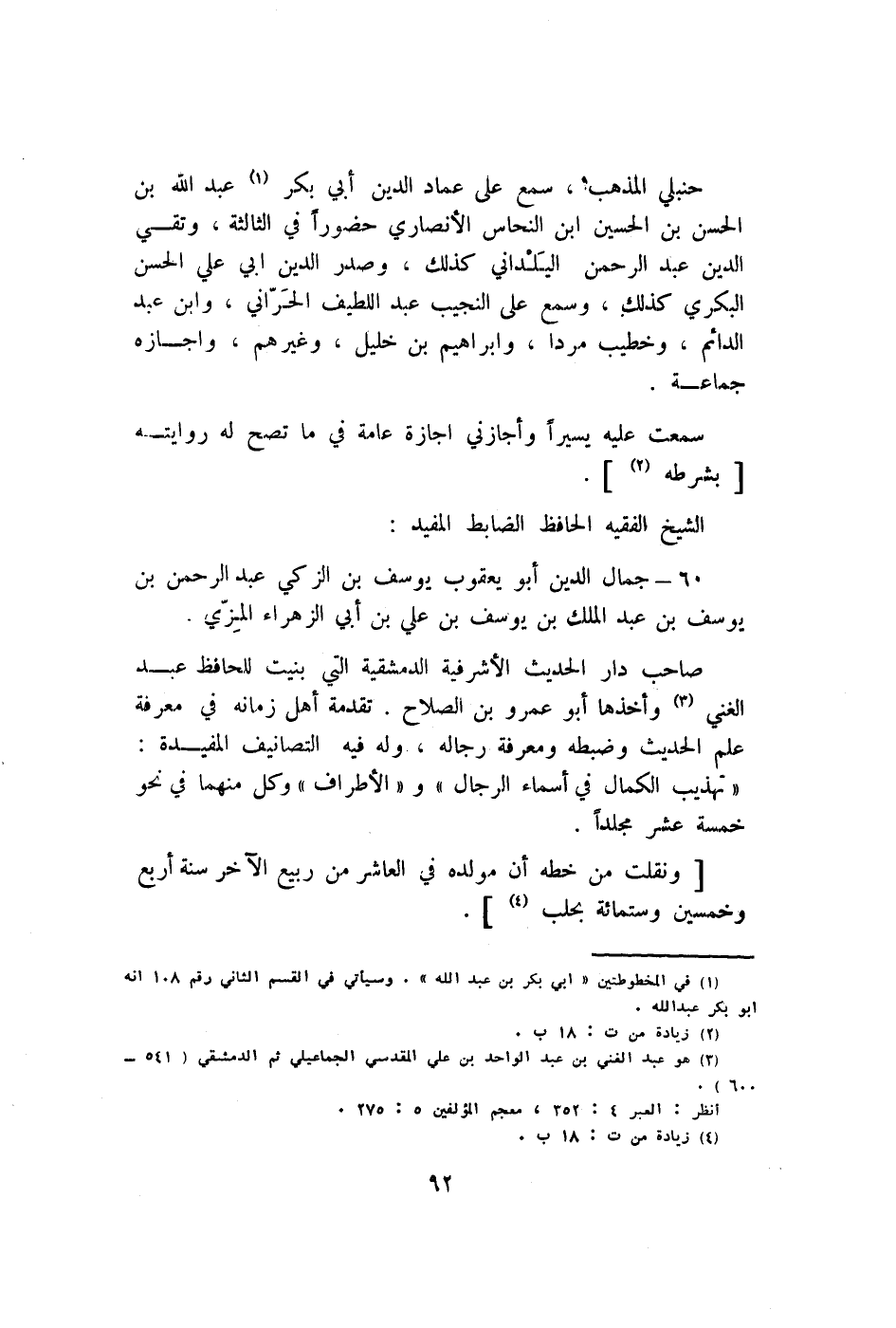 60 - جمال الدّين أَبُو يَعْقُوب يُوسُف بن الزكي عبد الرَّحْمَن بن يُوسُف بن عبد الْملك بن يُوسُف بن عَليّ بن ابي الزهراء الْمزي.