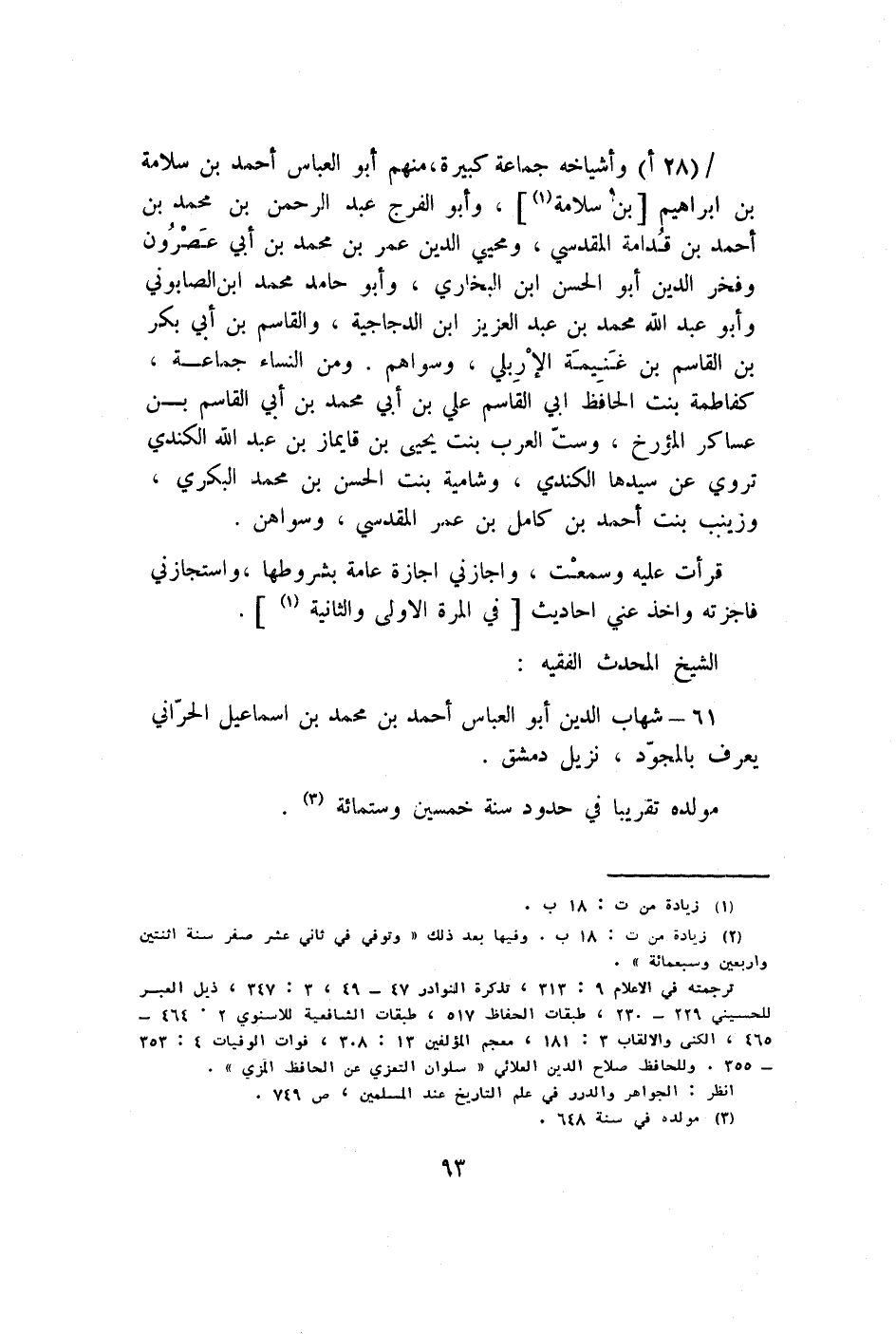61 - شهَاب الدّين أَبُو الْعَبَّاس أَحْمد بن مُحَمَّد بن اسماعيل الْحَرَّانِي يعرف بالمجود نزيل دمشق